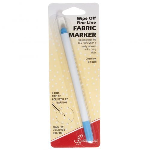 Sew Easy Fabric Marker Wipe-Off Fine Line makes a clear blue mark, Which is easily removed with a damp cloth or rinsed out in cold water. Use this marker to mark designs for embroidery, quilting and stitching on fabrics.